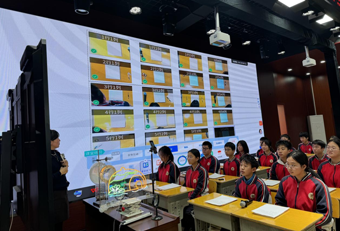 活动现场,桂林市第十九中学教师汤红丽执教的初中物理课《用“水透镜”探究近视眼的成因》,借助“小乐秒阅”完成了精彩展示。课堂上,AI批改功能快速精准处理练习数据,实时生成的学情报告助力教师精准把控教学进度,直播展示功能则清晰呈现实验细节与学生作答情况,显著提升了课堂互动效率与教学质量。课后,与会人员重点体验了“AI桂林慧教研”平台的“AI+循证”评课功能,打破了传统听评课“主观经验主导”的局限,实现了教学评价的标准化与精准化,充分彰显了平台在教研赋能上的核心价值。